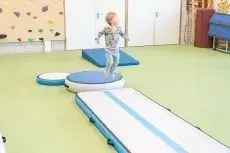 So erlernen Kinder auf spielerische und sichere Art und Weise neue Bewegungen. Grundlegende Fähigkeiten wie Krabbeln, Balancieren, Rollen, Springen und Landen werden mit Freude entwickelt. Die Bestandteile können als Set, aber auch einzeln verwendet werden. Du kannst verschiedene methodische Übungsabläufe aufbauen und mit Höhen und Arrangements variieren. Da unsere Sportgeräte mit Luft gefüllt sind, werden den Kindern die grundsätzlichen Bewegungen auf sichere und schnelle Weise vermittelt.
