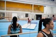 Comme le AirFloor a du rebond, il y a moins besoin de courir. Le rebond fournit du temps supplémentaire en l’air et sa douceur diminue la tension sur le corps. L’énergie économisée permet aux athlètes de faire plus de passages et aux entraîneurs de concentrer leur attention sur la technique. Avec seulement 10cm d’épaisseur, le changement est mineur par rapport à un plancher à ressorts. Votre entraînement ressemble donc à un entraînement sur un vrai sol !