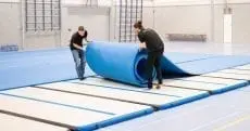 Daarnaast is de AirTrack Wedstrijdvloer meer dan 4 x zo snel op te zetten als een normale wedstrijdvloer!