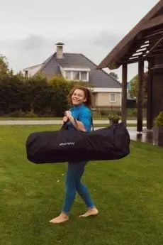 Deflated and rolled up the AirFloor Home XL is 1.1 x 0.35 x 0.2 m.