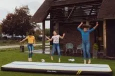 The AirTrack Spark is our biggest track for your home. Train alone or invite your friends! With its 5 meters long and 1.4 meters wide, the surface of the AirTrack Spark offers plenty of room for a good training session, whether you’re at home or at the gym. Having an extra 10 cm of thickness creates an incredible bounce. Take your training to new heights!